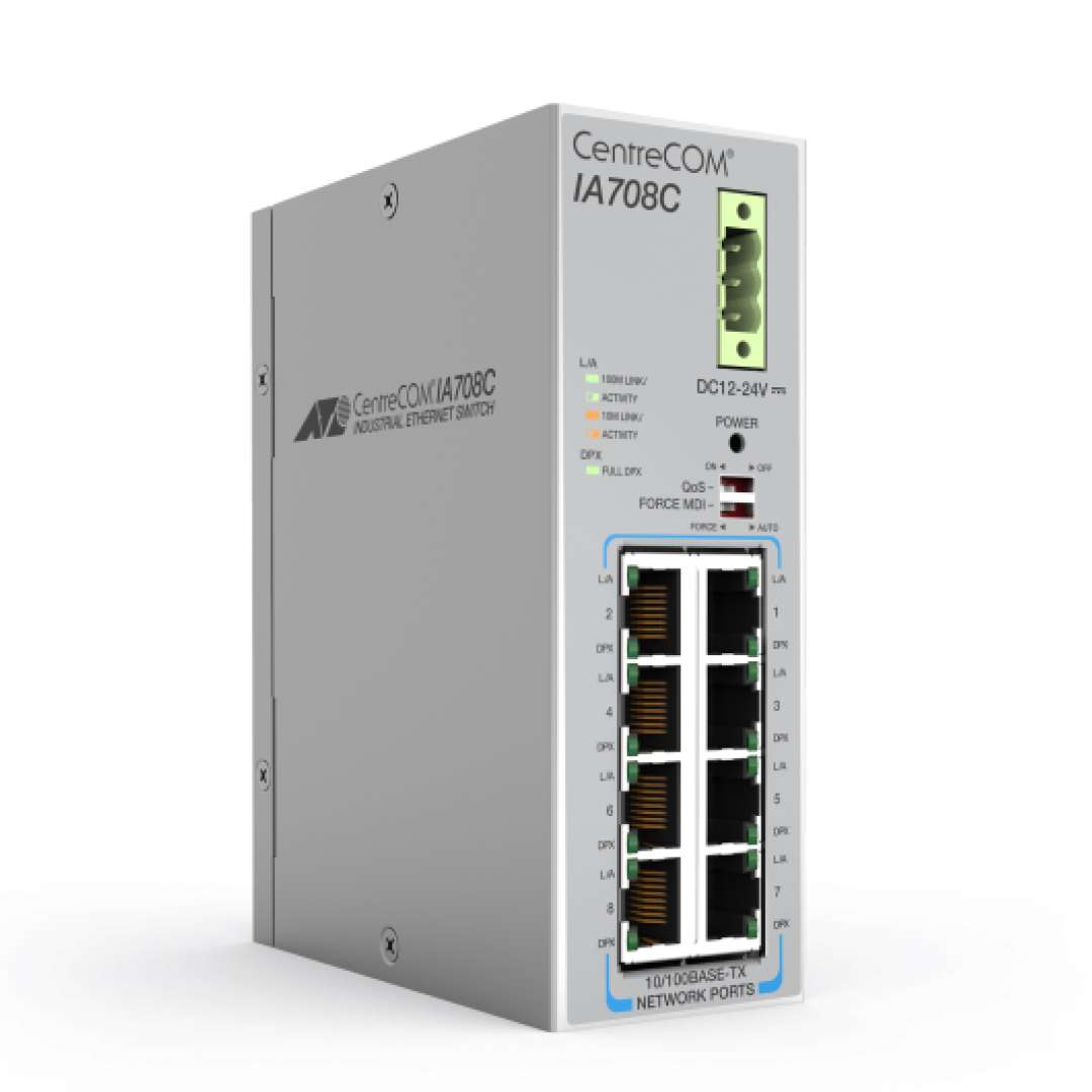 The Allied Telesis CentreCOM IA Series- IA708C in UAE is an industrial-grade, unmanaged Ethernet switch designed for reliable networking in harsh environments. Featuring Gigabit connectivity, rugged durability, and compact design, it is ideal for industrial automation, smart cities, surveillance, and IoT applications.
