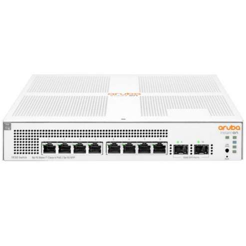 Aruba Instant On 1930 8G Class4 PoE 2SFP 124W Switch has 8 10/100/1000 RJ-45 and 2 SFP 1GbE ports. Provides 124 W Class 4 PoE power