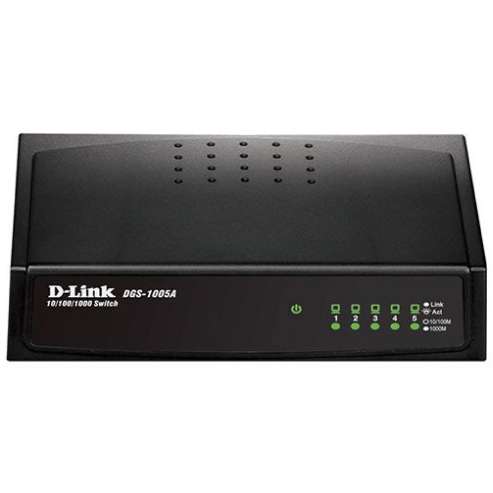 The DGS-1005A 5-Port Gigabit Easy Desktop Switch is part of D-Link’s new series of SOHO devices that make use of D-Link’s Green Technology, providing energy savings, reduced heat, and a longer product life without sacrificing performance or functionality. It provides five Gigabit ports for easy expansion of your network and a quick way to upgrade your network to Gigabit connectivity. An energy-efficient power adapter (Energy Level VI qualified), minimized use of harmful substances (RoHS compliant), and recyclable packaging make this switch truly environmentally friendly.