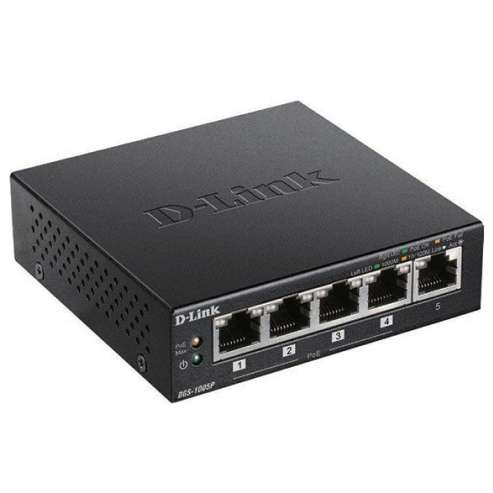 The D-Link DGS-1005P 5-Port Gigabit Switch with 4 PoE Ports enables you to connect Power over Ethernet (PoE) devices such as wireless access points (APs), IP cameras, and IP phones to the network. Built with home and small business users in mind, the DGS-1005P is compact and operates silently, making it ideal for most rooms and offices.