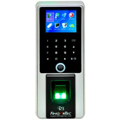 R3 is the latest biometrics door access and time attendance product from FingerTec, which combines modern technologies, great design and amazing functions in one. This machine features an eye-catching 2.4” color LCD and intuitive touch-panel; made robust to stand the wear and tear of everyday use. Multiple methods of verification which include fingerprint, card and password are available in R3, providing convenience at its best to busy users. The product comes bundled with Ingress, the perfect door access solution that is loaded with great door access features and comprehensive time attendance features, all without additional charges. With R3, life gets more exciting and secured with keyless door access solution for your life’s convenience.