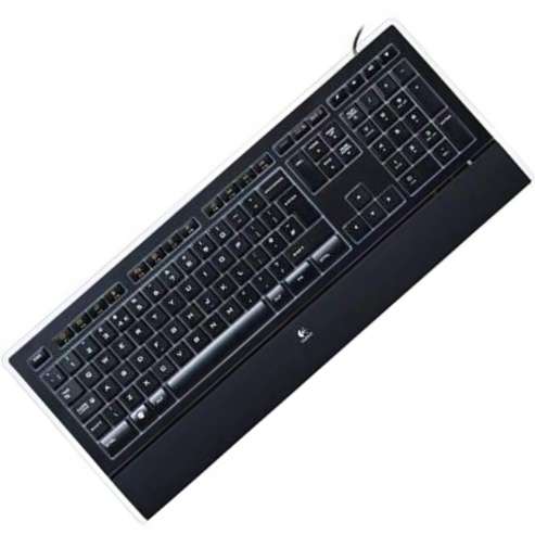 Convenient typing in low light or in the dark. The illuminated keys are sharp, bright and easy to read.Whisper-quiet, comfortable typing with the Logitech Perfectstroke™ key system and a built-in, soft-touch palm rest.The built in palm rest has a soft, rubber coating for enhanced comfort. Your hands should move freely and be elevated above the palm rest while you type. In between typing, use the palm rest as a resting place for your wrists. Placing the keyboard flat on the desk helps to keep your wrists in a more neutral (straight) position, but you can also use the tilt legs to adjust the height to suit you.The keyboard is classic black with a touch of orange to identify the FN functions. A clear transparent strip borders the left, top and right edges and a complementary strip of glossy black separates the keys and the palm rest. Embedded in the glossy black strip, to the right of the keyboard, you will find the Num Lock, Caps Lock and Scroll lock LEDs.Together, these elements add a touch of elegance to your desk.The keyboard has a full size layout with a number pad and full size arrow keys to navigate your document easily.