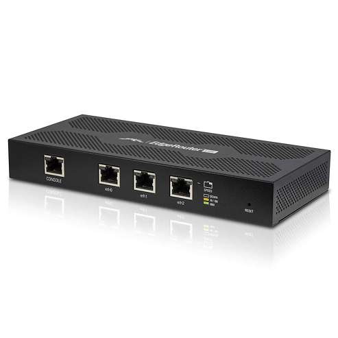 The ERLite-3 EdgeMax EdgeRouter Lite 3-Port Router from Ubiquiti Networks is housed in a compact, fanless form factor. It operates quietly and delivers powerful routing, security, and management features you require to efficiently run a network. This EdgeRouter Lite provides a graphical user interface designed for convenient setup and control. Each of its Gigabit port functions as an independent interface. You can configure Virtual Local Area Network (VLAN) interfaces to meet network segmentation requirements. You can also configure static routes and dynamic routing protocols, to effectively manage the routes used by the EdgeRouter.