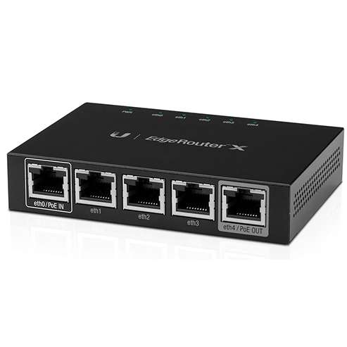 Powered by 24V passive PoE or a power adapter, the EdgeRouter™ X features a passive PoE passthrough option* to power an airMAX® device.